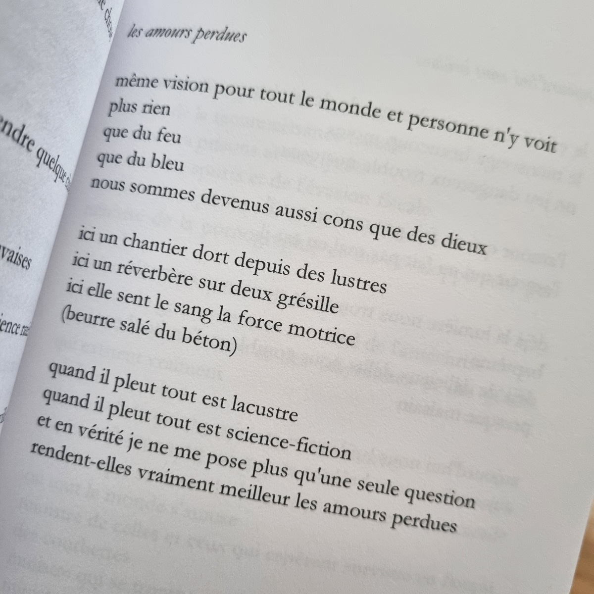 Il pleut des villes en lui, c’est désaffecté entre deux folles, tout schlingue, démantelé, mais le feu droit de sa poésie parmi les bêtes brutes continue d’avancer, que c’en est beau comme le soufi Attar à qui je vole l’image.