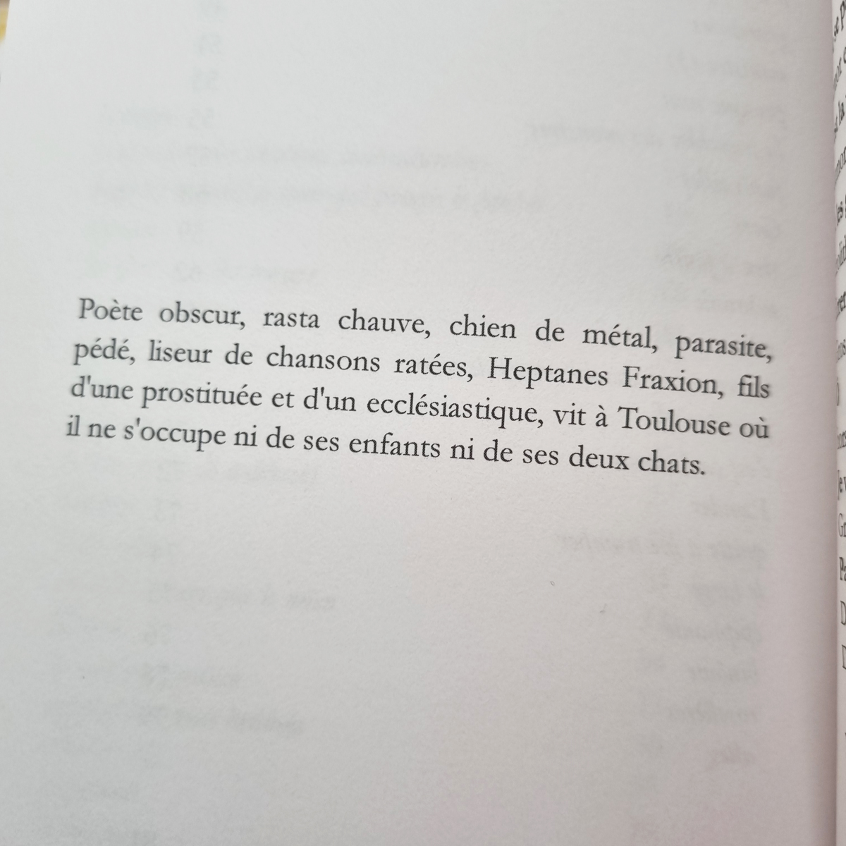 Il y a quelques mois, bien entouré d’autres, j’ai lu ce poème Ni chagrin d’amour ni combat de reptiles. J’ai pensé me faire tatouer le titre sur le bras, comme une bravade mystérieuse vers des ennemis invisibles et des copains imaginaires. Mais son auteur, l’étrange et magnétique Toulousain de la casse, Heptanes Fraxion, m’a suggéré d’en écrire plutôt ce que j’en pensais.